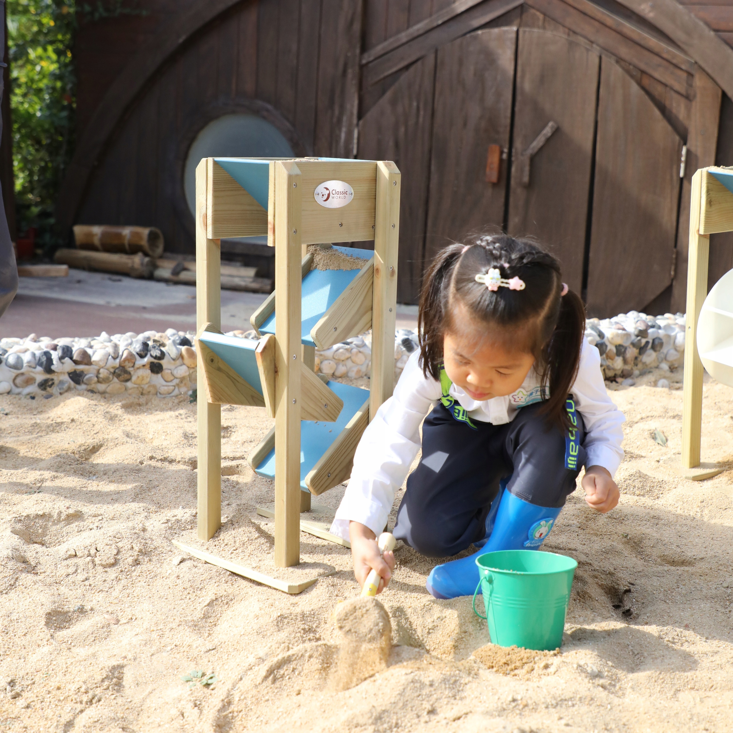 Wooden shape sorting and permanence box